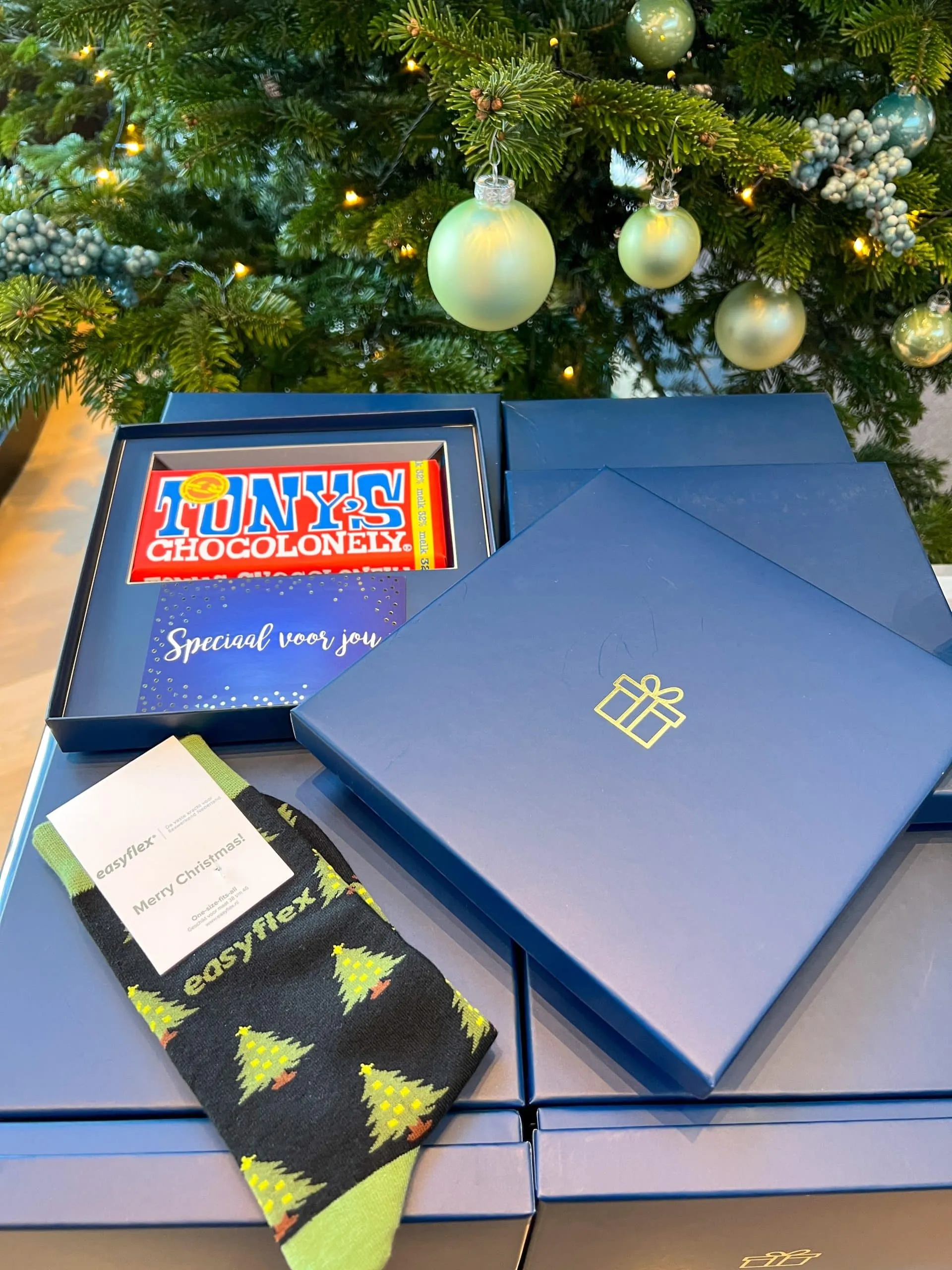 In onze kerstinspiratiegids hebben ze tussen de tientallen voorbeeldontwerpen een mooi design gevonden. De vraag of deze ook in hun huisstijl gemaakt kon worden. Geen probleem, we hebben ze aangepast en ook het label op maat gemaakt.