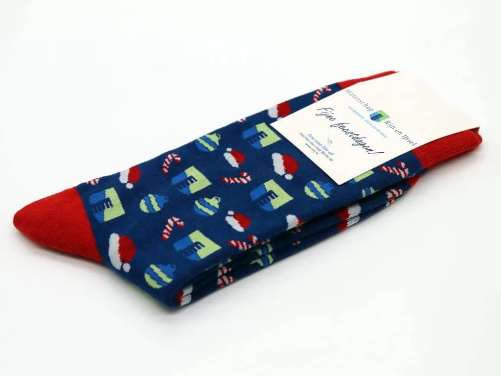 In the search for a Christmas gift, Water Board Rijn and IJssel (WRIJ) came to us for socks. The question of whether the logo could be incorporated into the socks, along with various Christmas attributes.